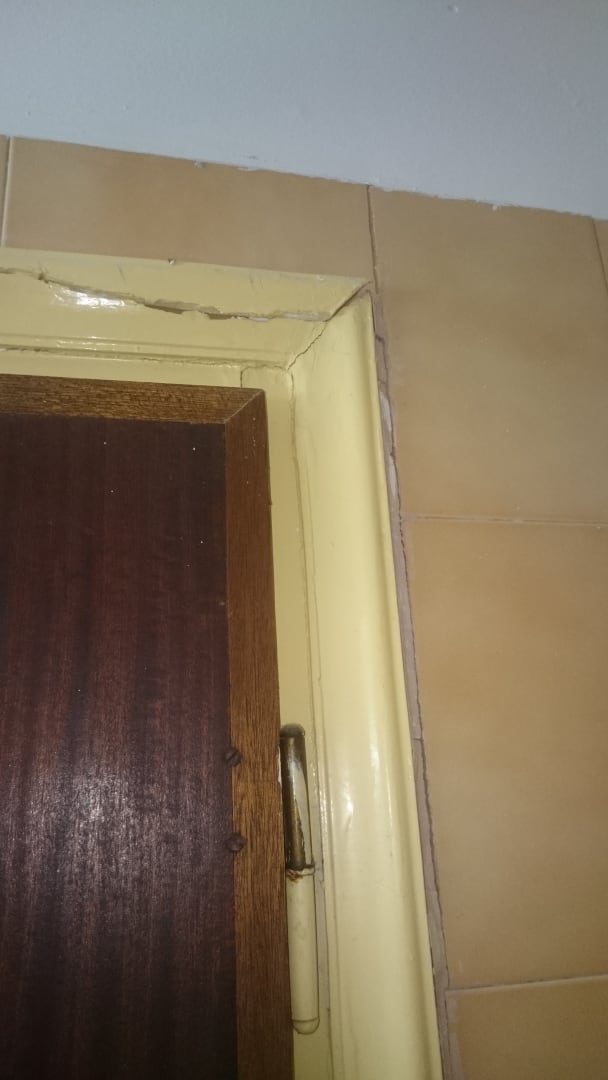 Zerbrochene Türrahmen,offene Fliessenspalten