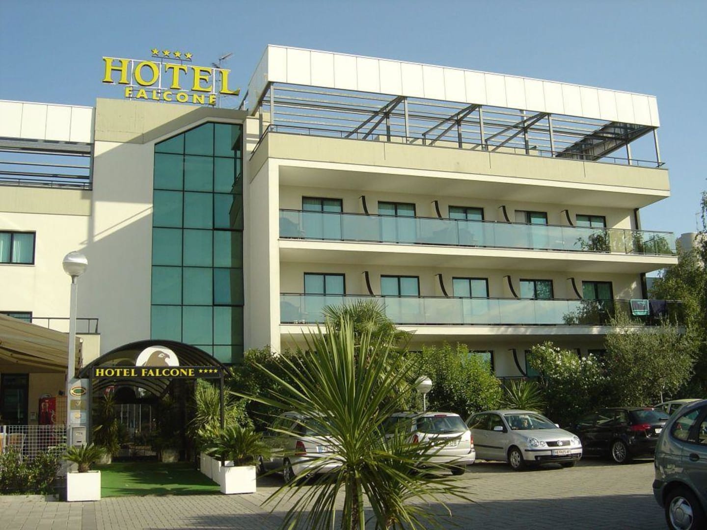 Hotel Falcone Eingang StraßenseitigDer Straßenseitige Eingang (Viale Europa 21) des Hauptgebäudes.