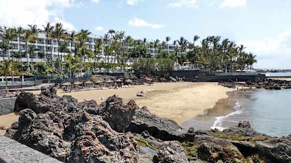 Kleine Badebucht, mit Blick auf das Hotel Fariones