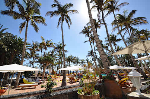 Hotelbar mit Palmenblick