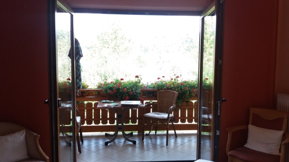 Blick vom Zimmer Fladensteine auf den Balkon