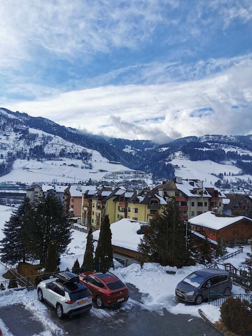 Immer ein Platz für das Auto und schöne Aussicht vom balkin