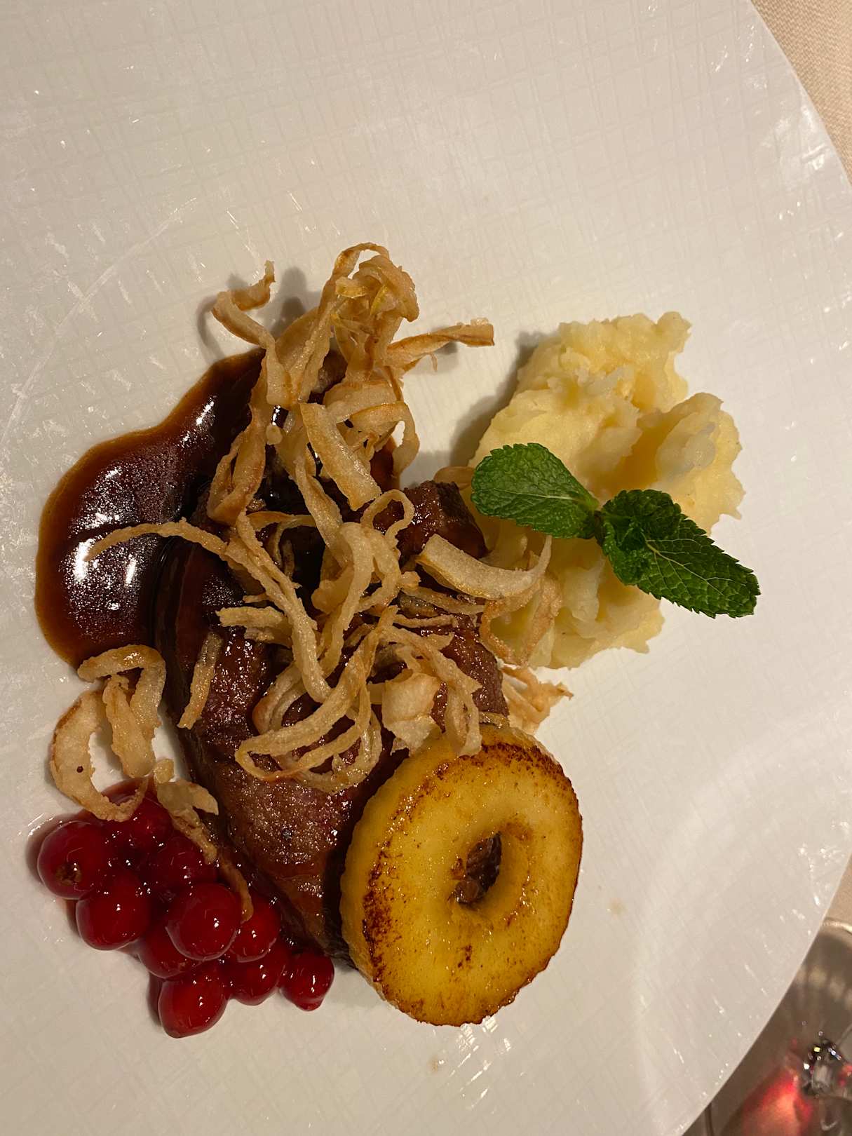 Kalbsleber, Röstzwiebeln, Kartoffelpüree.