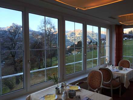 Tische mit Talblick im Restaurant