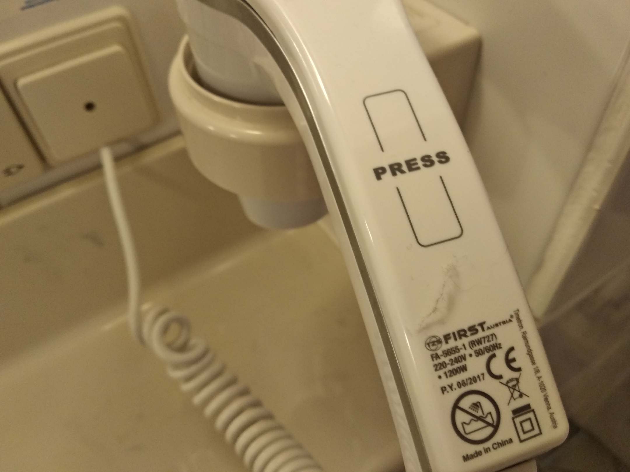 Einmal mit dem Finger über den Föhn. Staub bei Ankunft