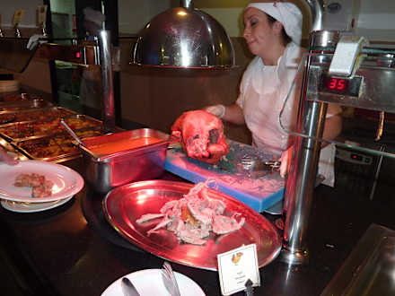 Beim Fleisch schneiden