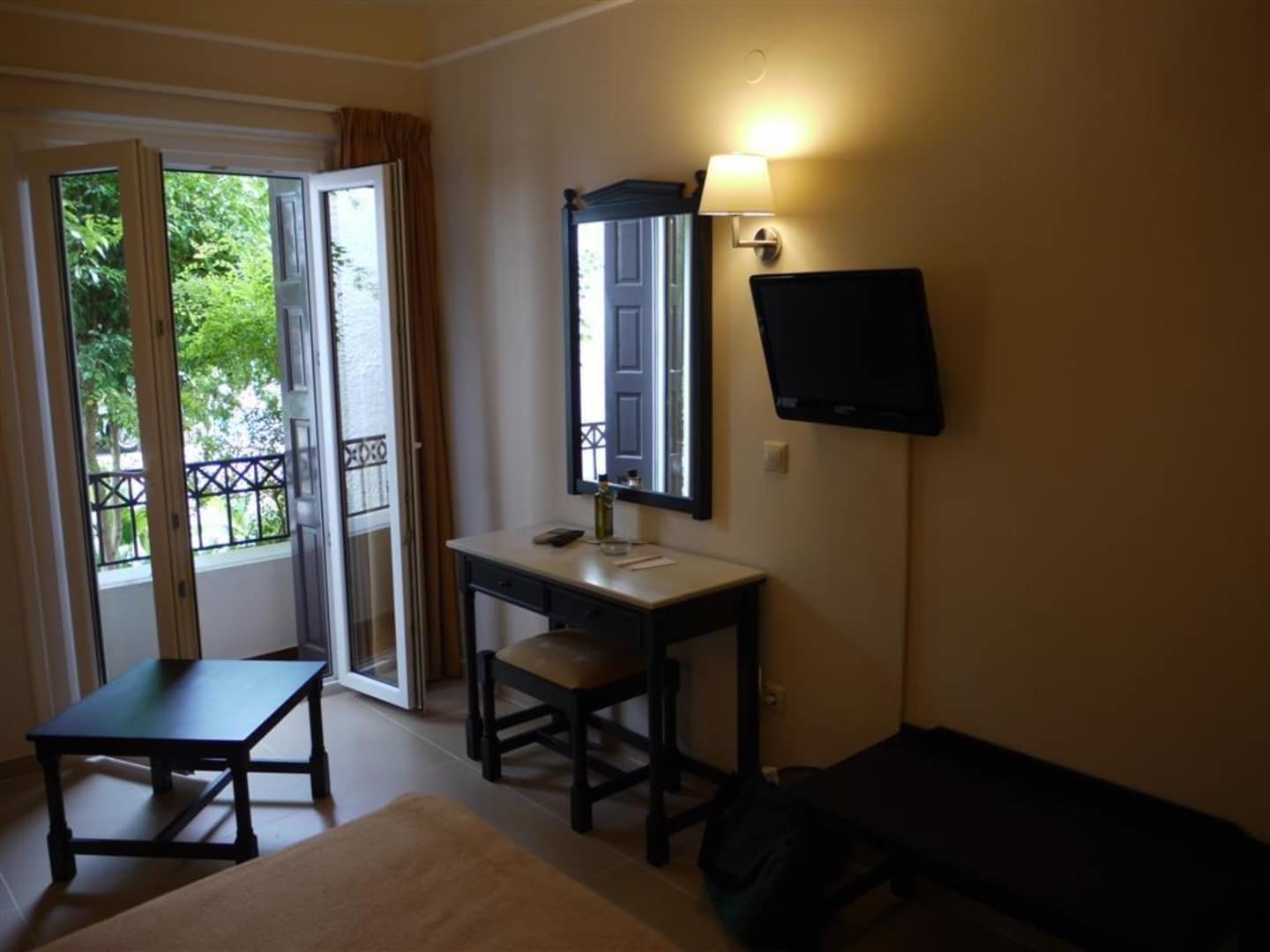Kommode, TV, Tisch & Mini-Balkon