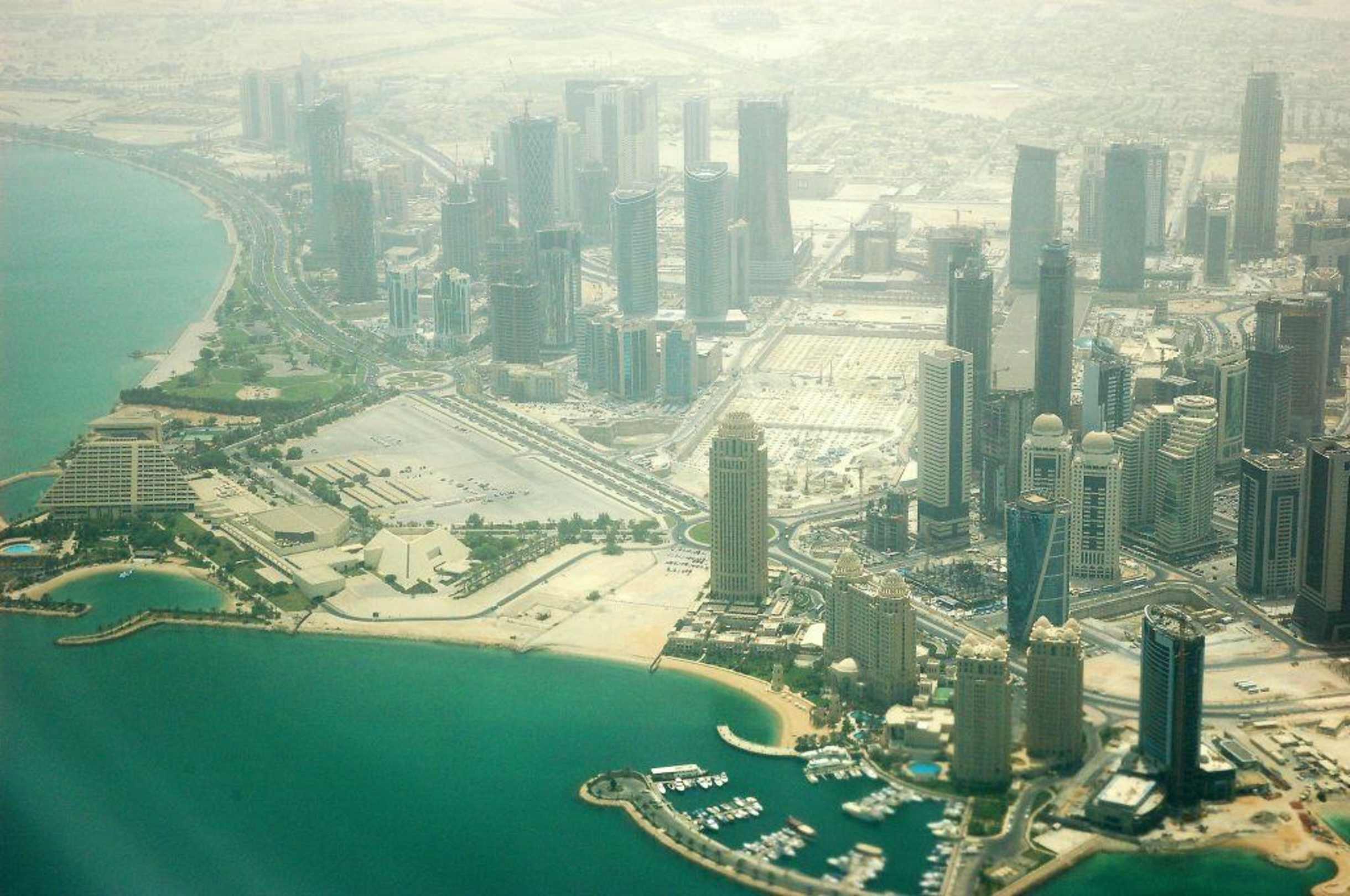 Four Seasons Hotel vorne, links Sheraton Hotel