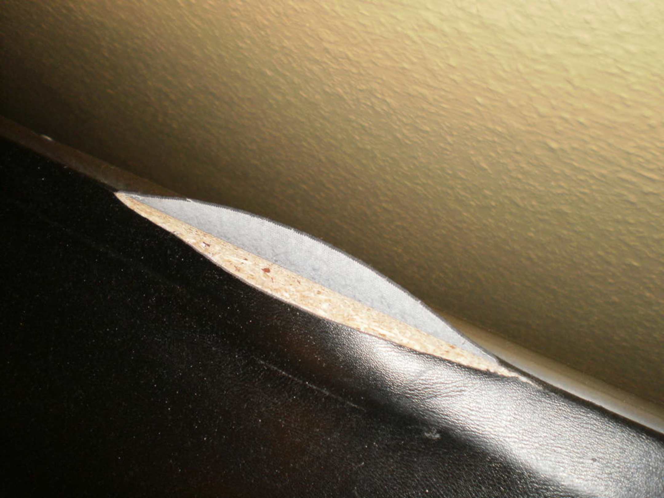 So sah die Bettkante aus die aus einer Rolle aus Kunstleder bestand,total kaputt.