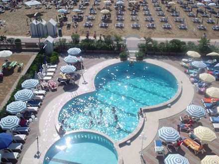 Blick vom 4ten Stock Zimmernummer 403 direkter Meerblick auf den Hauseigenen Pool.