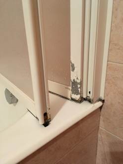 Alt und nach dem Dusche steht das Bad unter Wasser