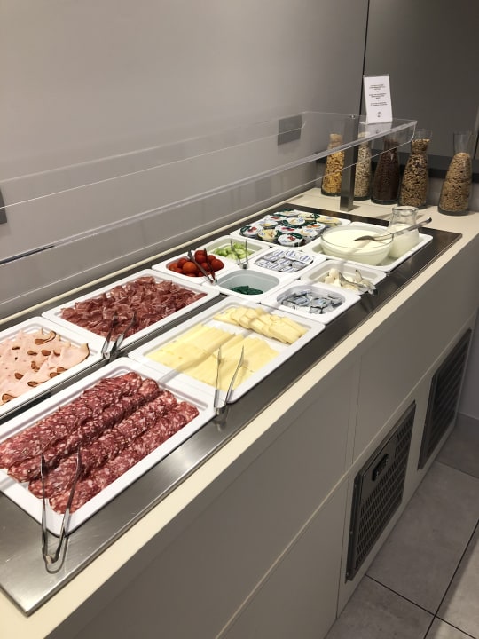 Auswahl an Wurst, Käse und Joghurt