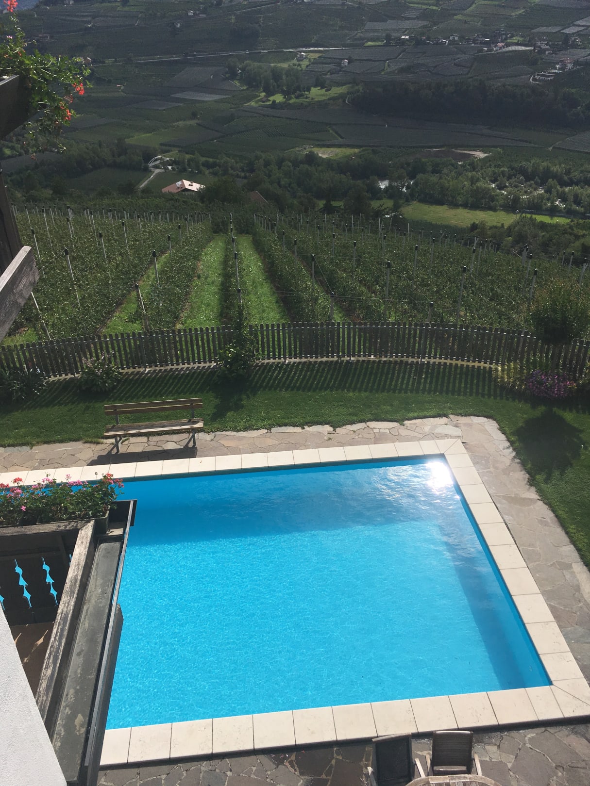 Blick vom Balkon auf Pool
