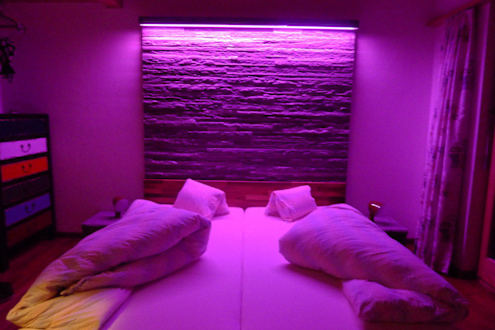 Doppelbett pink beleuchtet