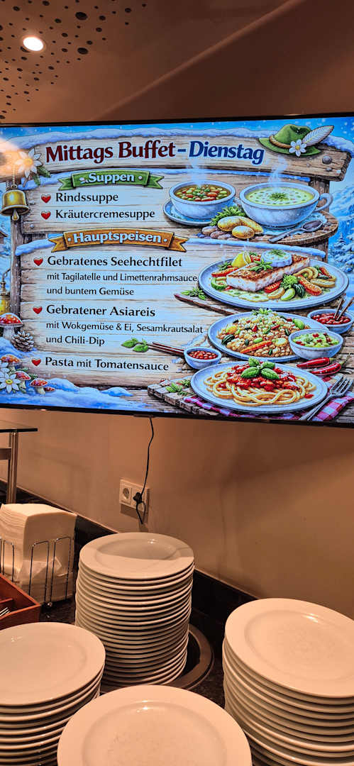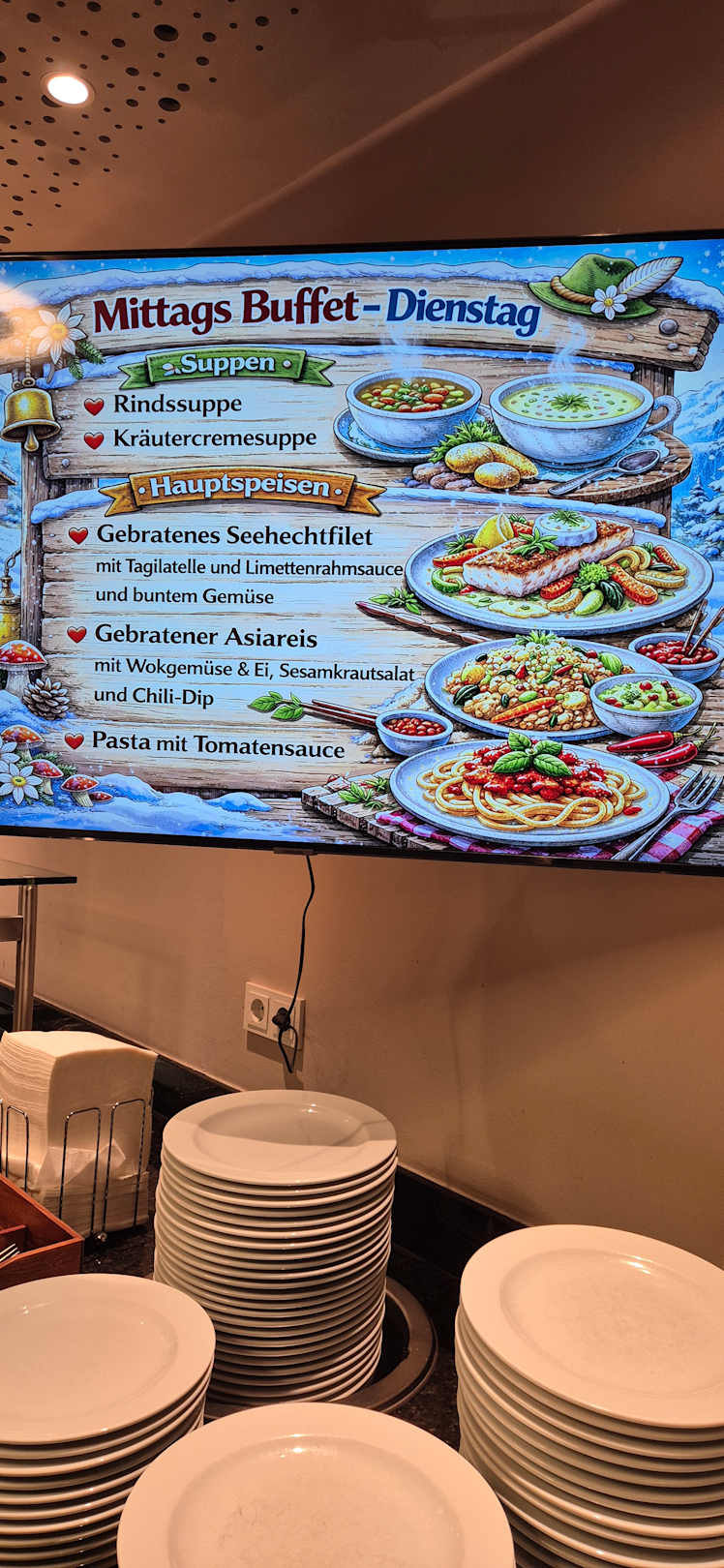 Mittagstisch auf neuen Fernseher