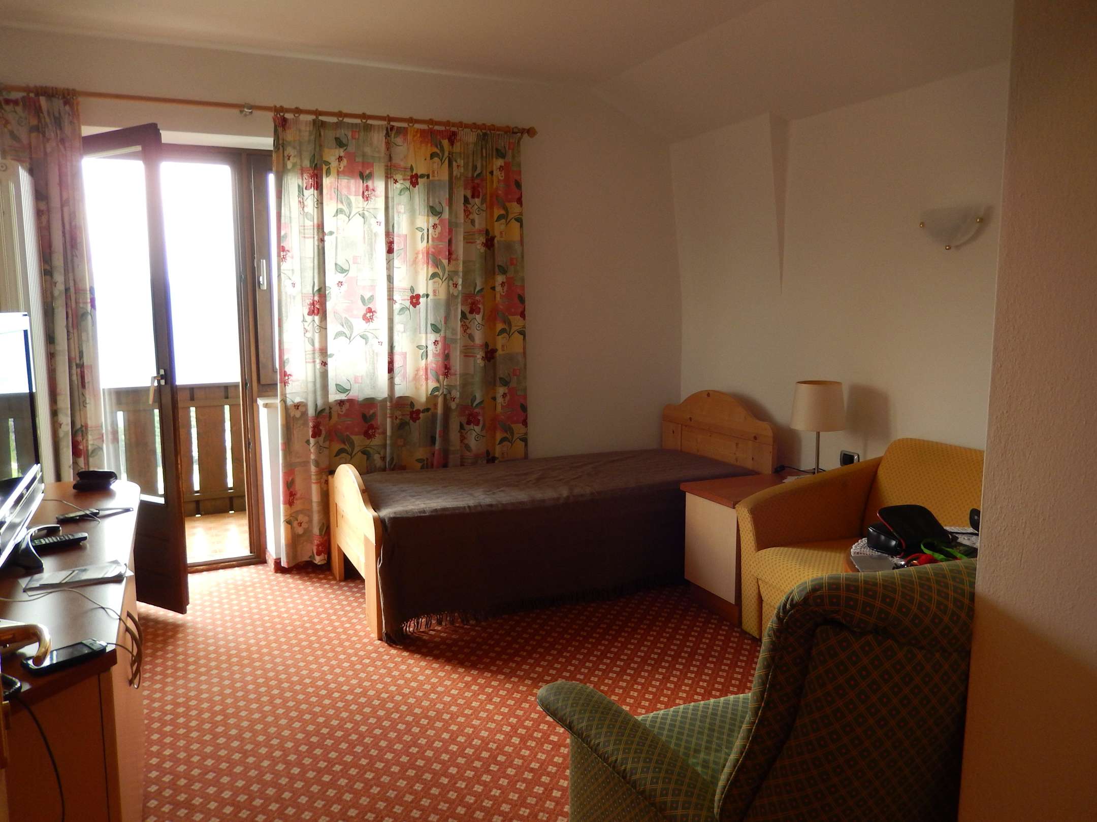 Blick in eine gemütliche Suite mit Balkon