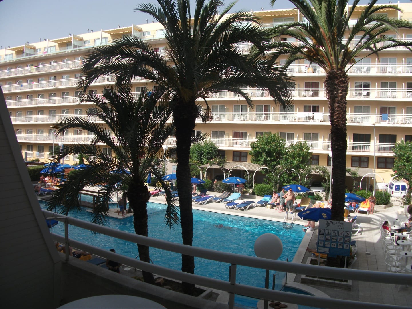 Blick vom Balkon auf die Poolanlage