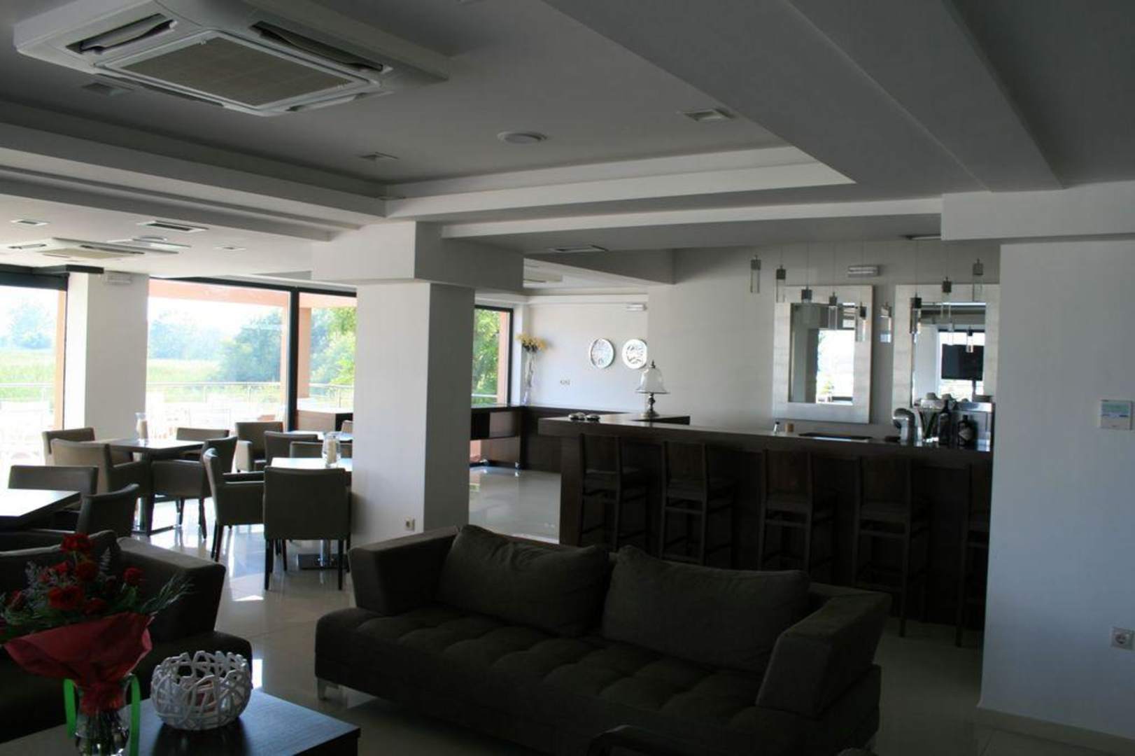 Hotel-Lobby mit Bar und Frühstücksbereich