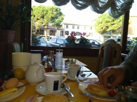 Frühstück und Blick zur Straße