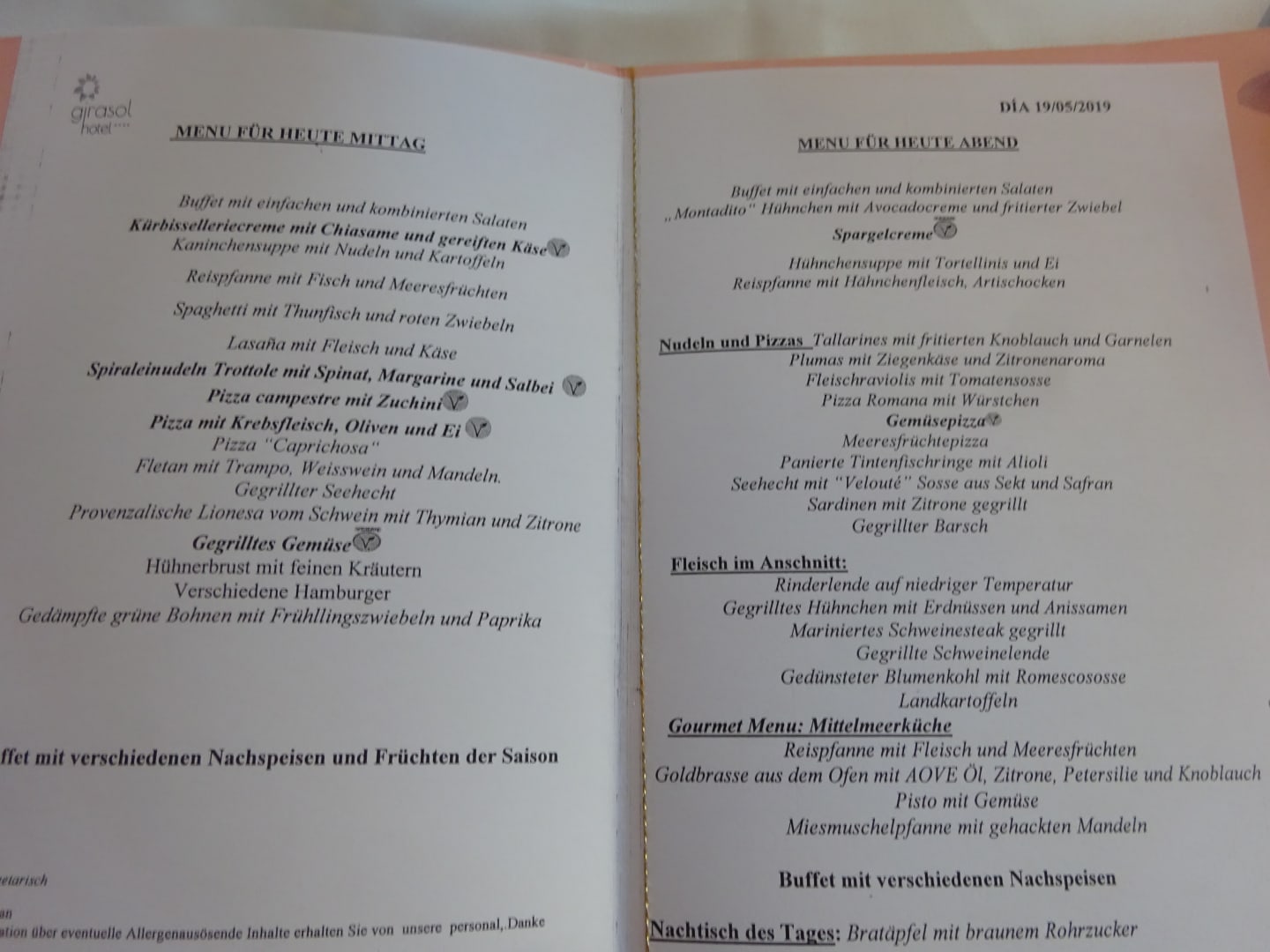 tägliche wechselnde Menuekarte