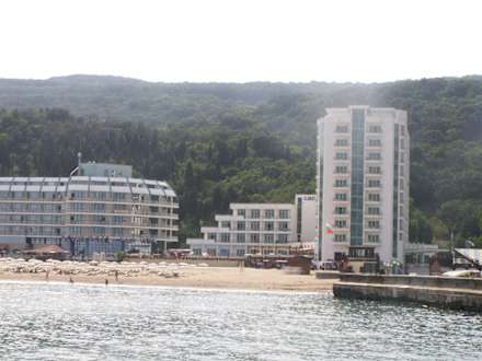 Hotelansicht vom Meer aus gesehen