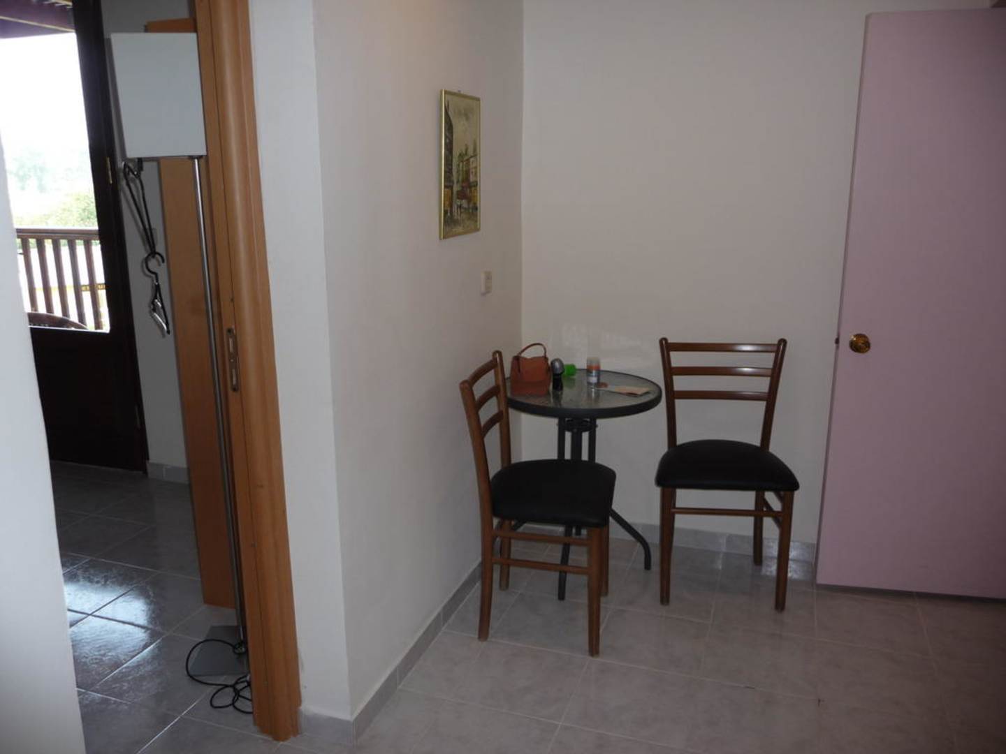 Die holzfarbene Türe war das Elternschlafzimmer. Von diesem Zimmer aus konnte man den großen Balkon begehen. Die rosafarbene Türe war das Kinderzimmer. Es gab dort 2 Einzelbetten sowie eine Schlafcouch zum Ausziehen.