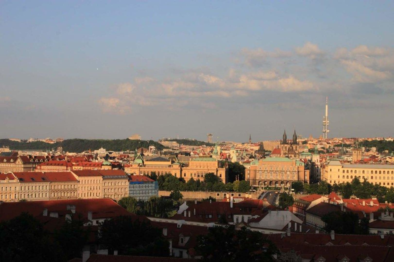 Blick zur Stadt von der HotelterrasseDie Hotelterrasse im 6. Stock (Lift nur bis zum vierten Stock!) ist das Freiluftrestaurant mit Blick über Prag