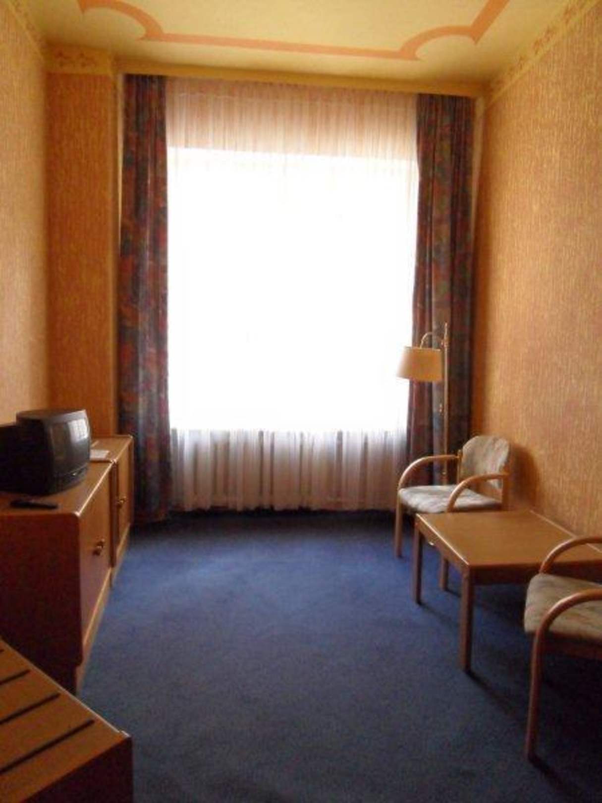 Blick von der Zimmertür zum Fenster.