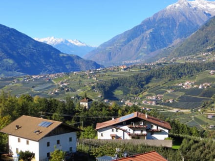 Blick vom Südbalkon übers Passertal nach Dorftirol