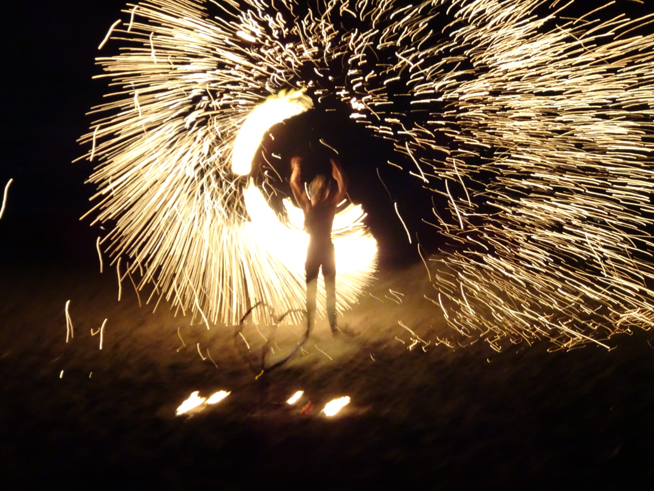 Feuershow am Strand vor dem Hotel
