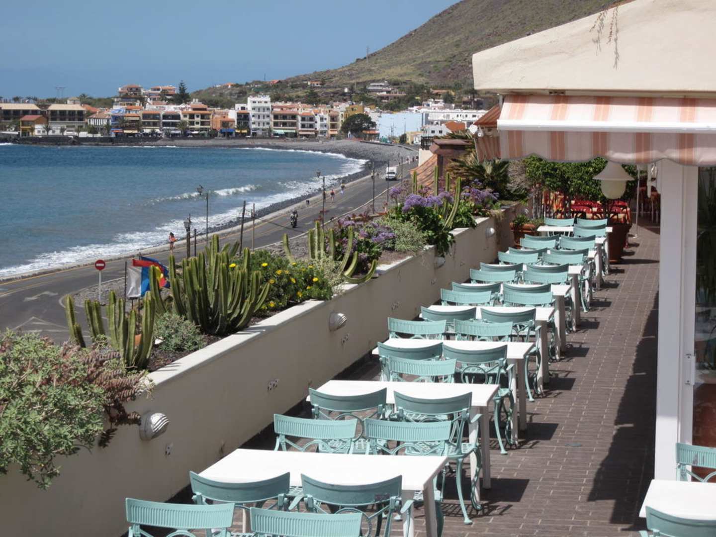 Hotel FrühstücksterrasseVon der Frühstücksterasse hat man einen sehr schönen Blich auf den Playa Valle Gran Rey.