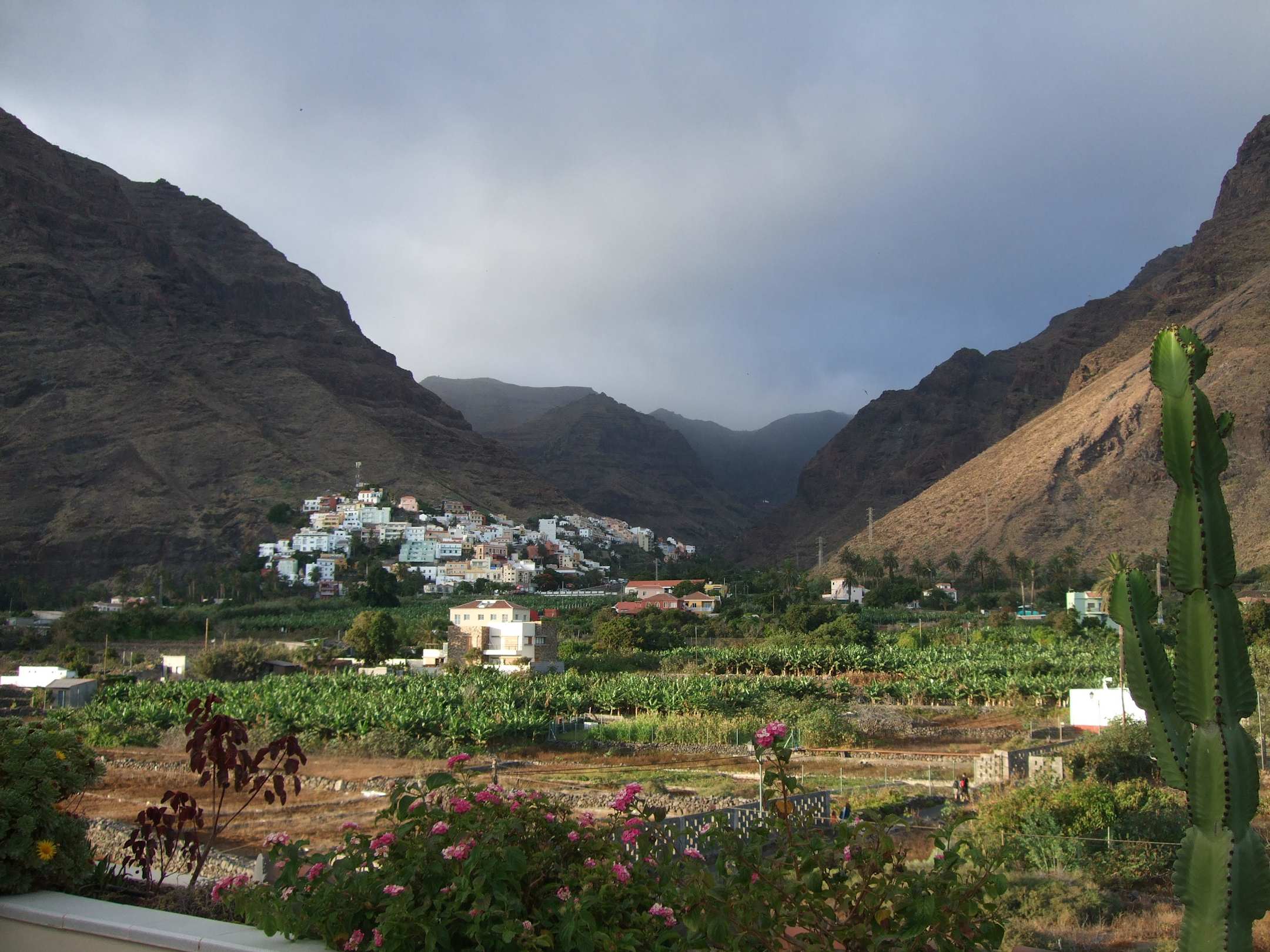 Sicht ins Valle Gran Rey, mit Wolken im Gebirge