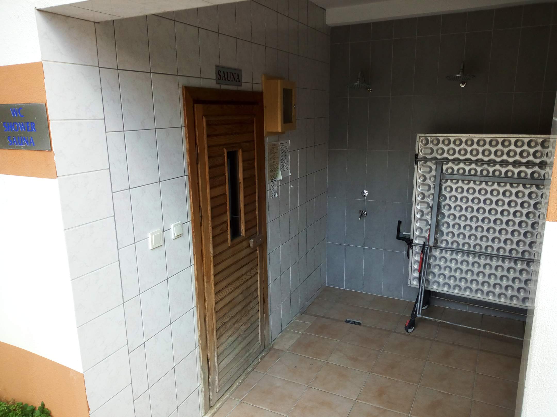 Tischtennisplatte abgestellt in ausschließlicher KALTdusche , welche zu SAUNA gehört !!