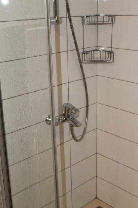 Duschkabine mit defektem Schlauch