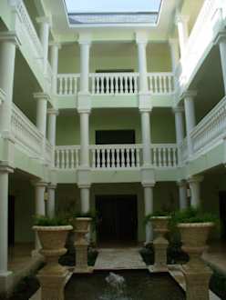 Innenhof eines dreistöckigen Wohngebäudes