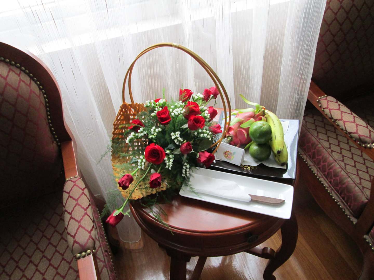 Begrüßungsblumen und Obst