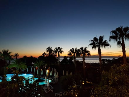Garten und Pool am Abend