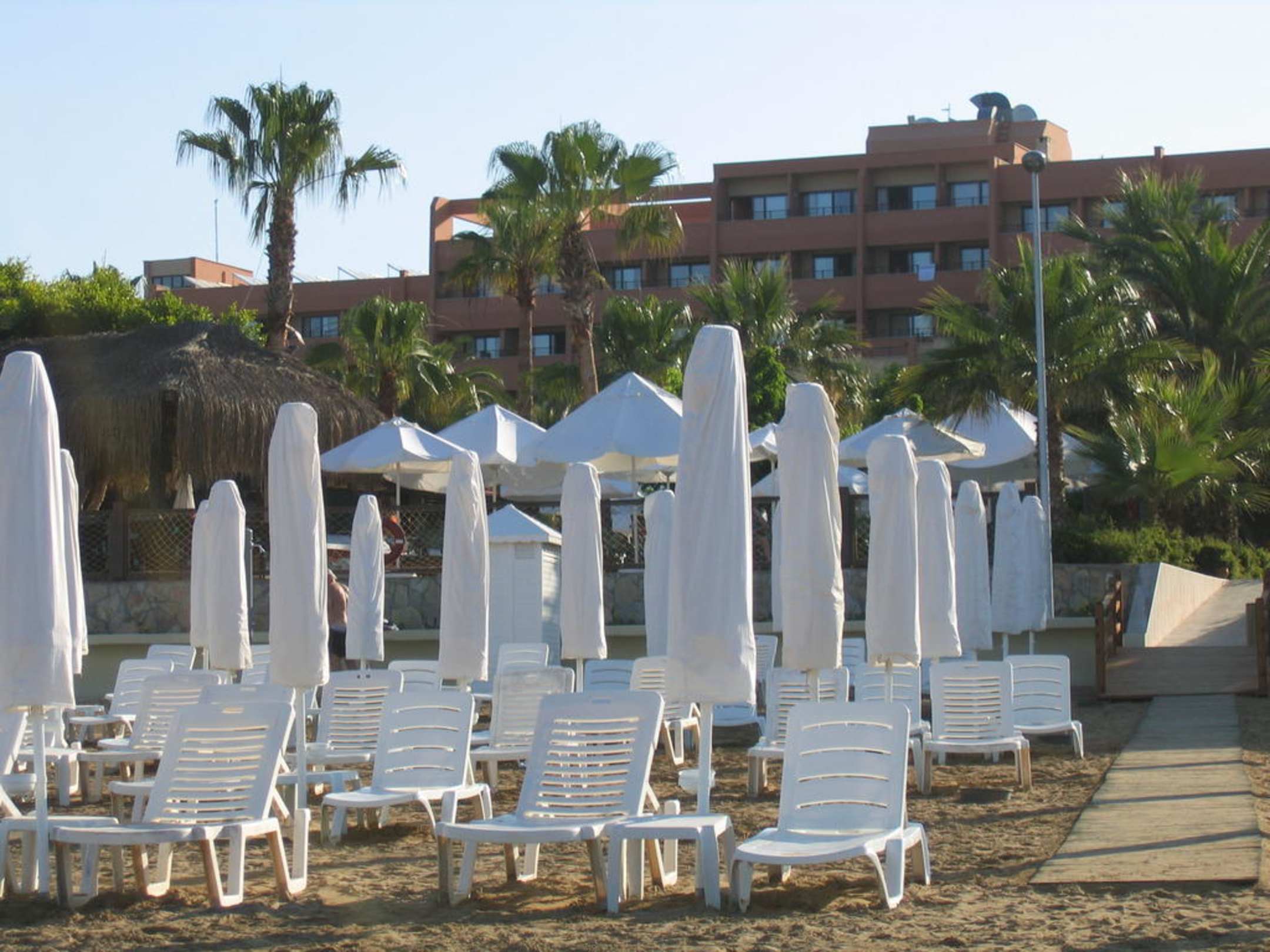 Strand mit Hotel im Hintergrund