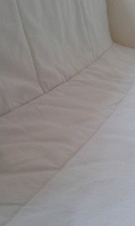 weißer Sessel, bei Zimmer-Bezug schwarze Haare und Flecken auf Bezug