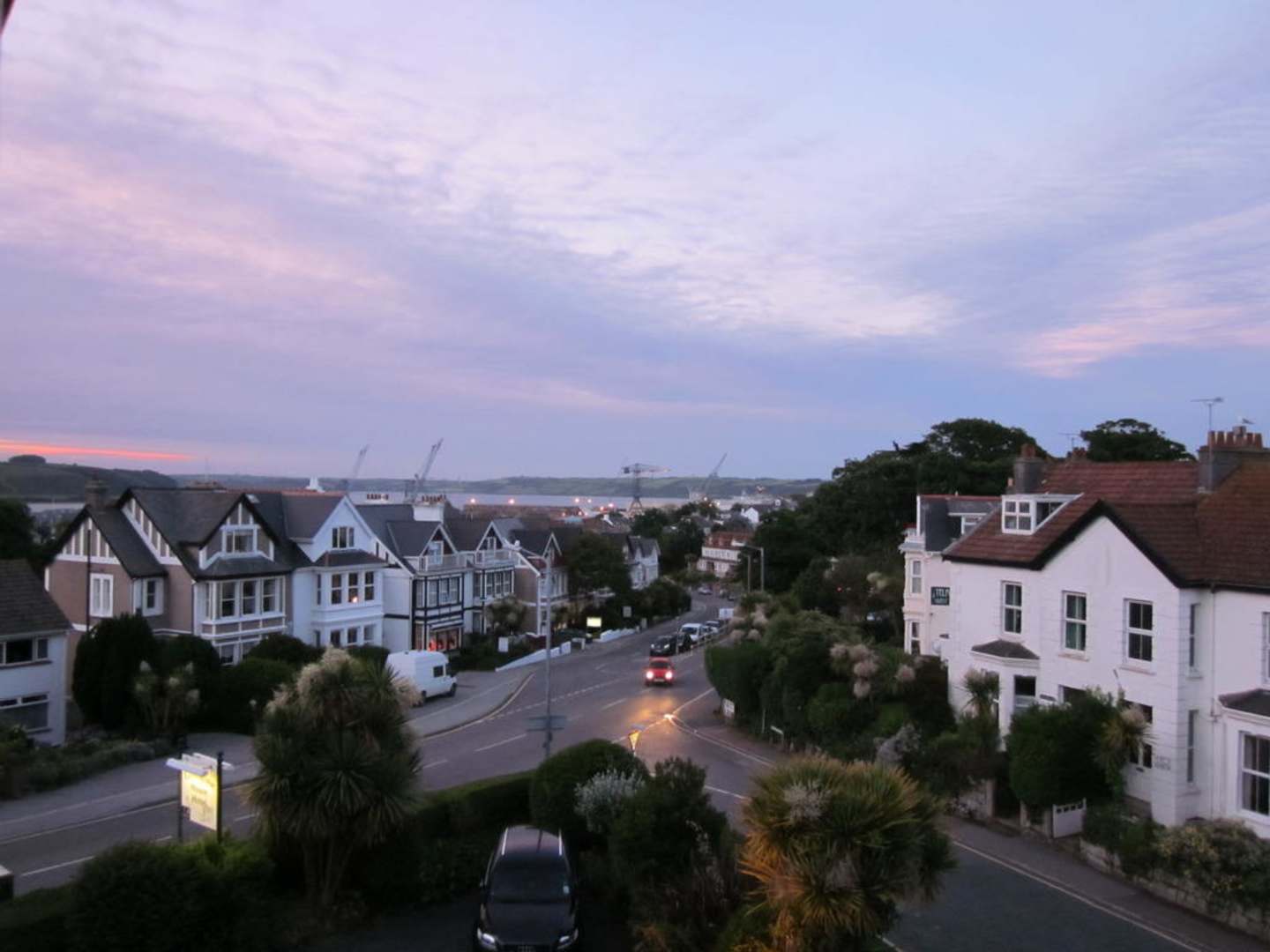 Blick vom Fenster unseres Zimmers über Falmouth bis hin zum Meer