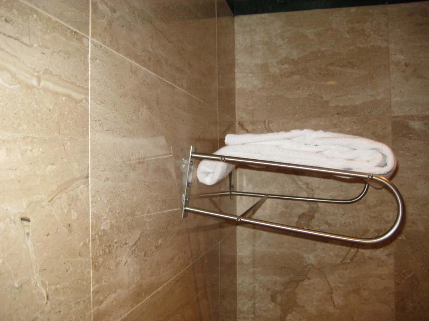 Obwohl die Putzfrau das defekte Mobiliar jeden tag sieht, um neue Handtücher darauf zu legen, scheint keiner auf die Idee zu kommen, etwas zu reparieren.