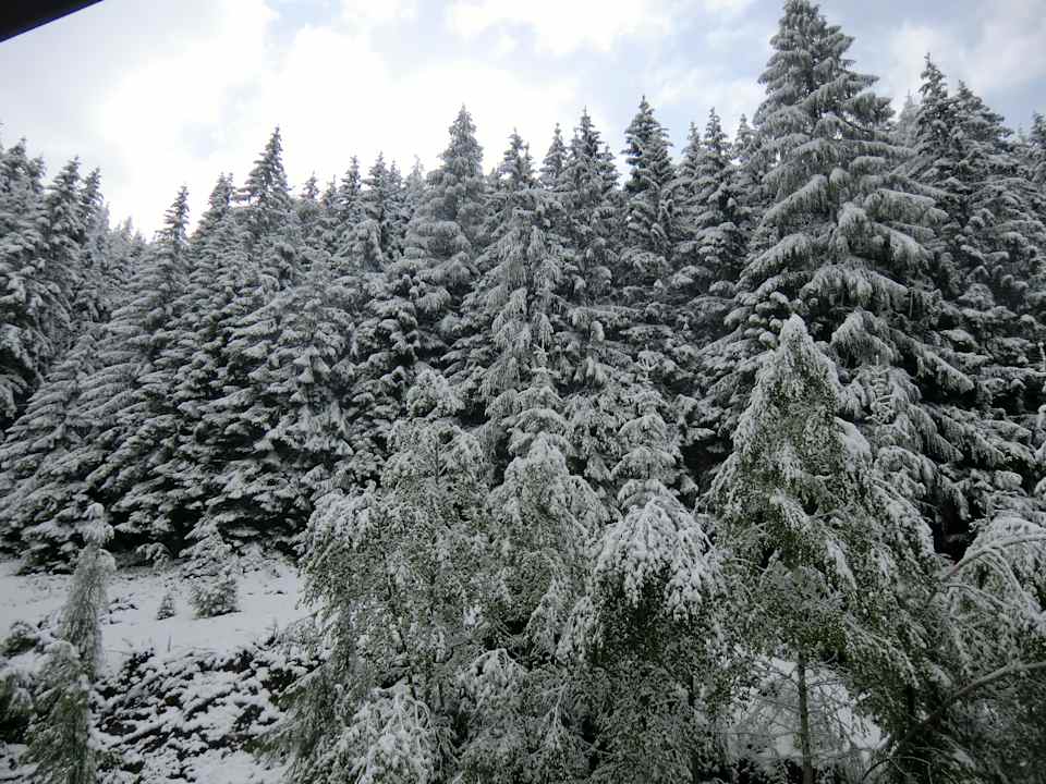 Wald im Schnee, Blick aus dem Zimmer