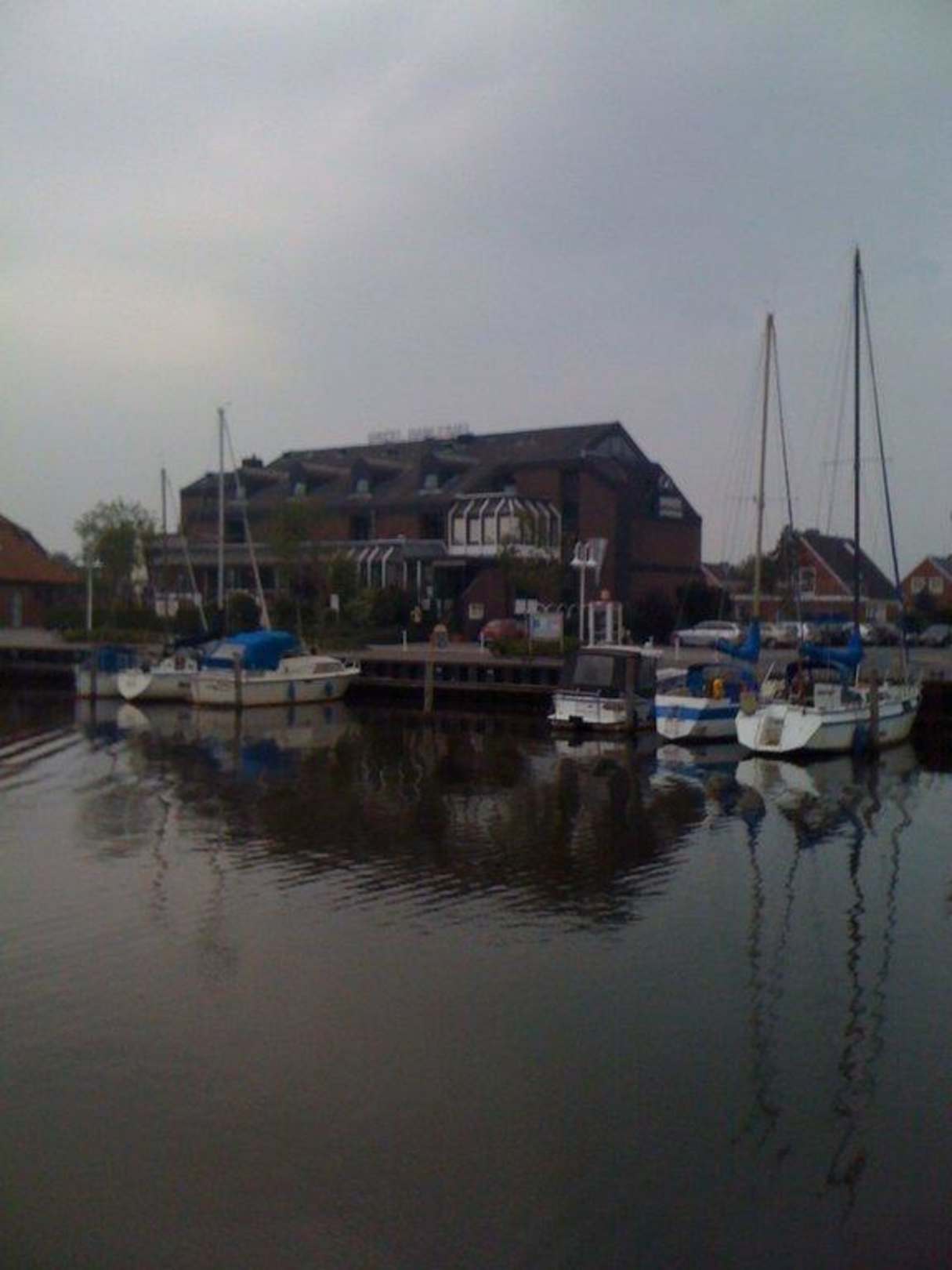 Hotel Harlesiel von außen, davor der Yachthafen!