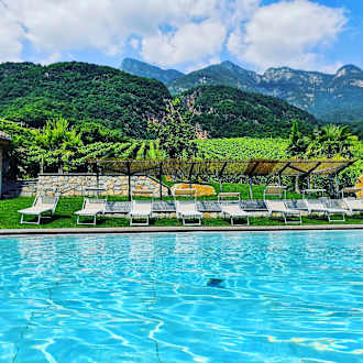 Was für eine Aussicht vom Pool auf die Berge