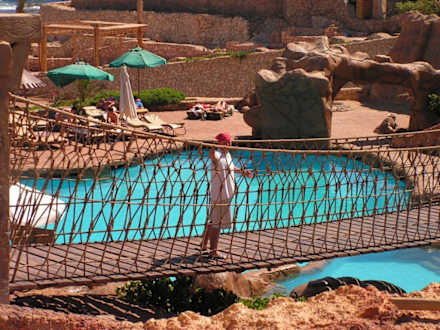 Hängebrücke über dem Pool