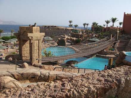 Hängebrücke über Poollandschaft
