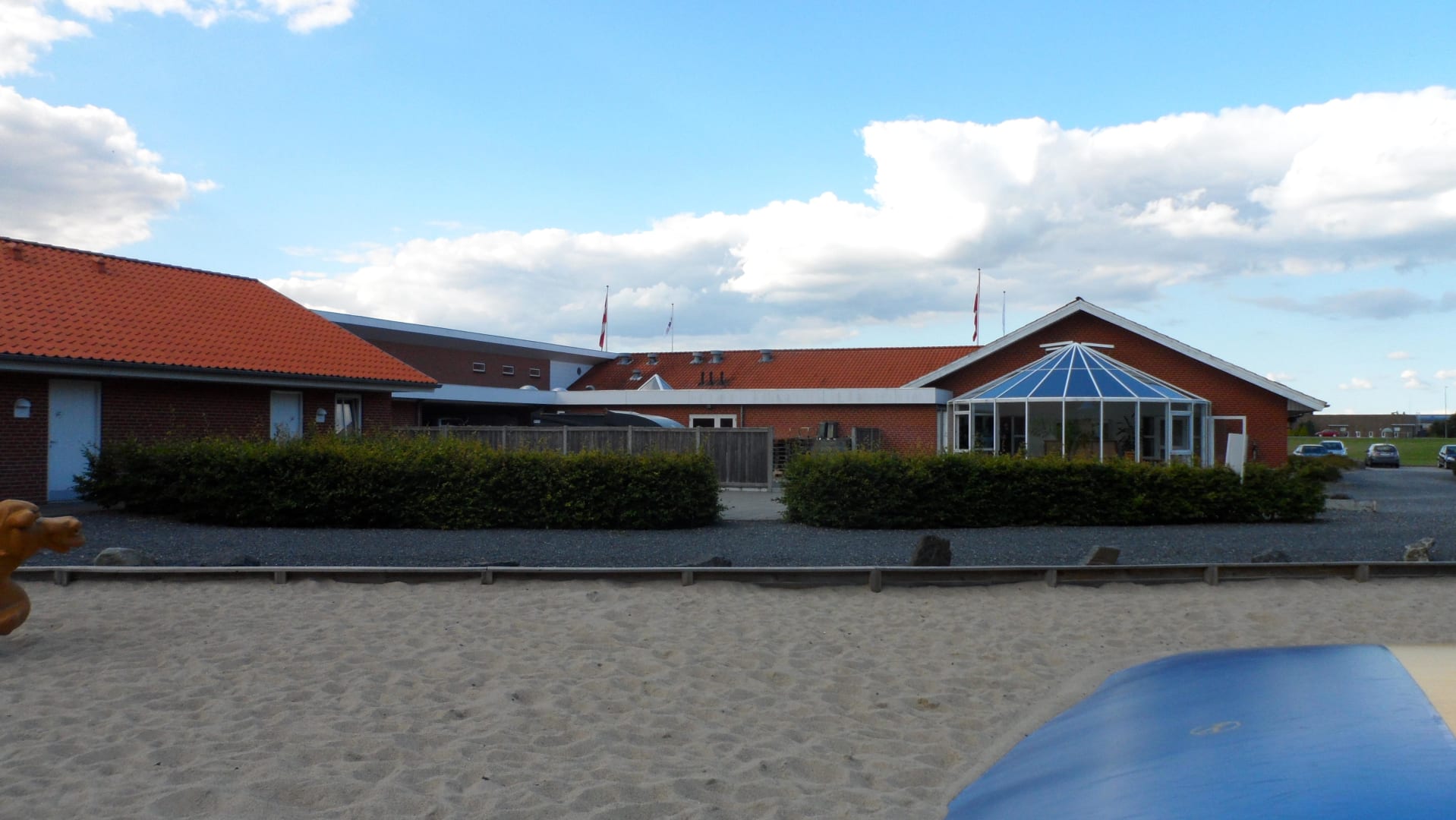 Blick vom Spielplatz zum Restaurant