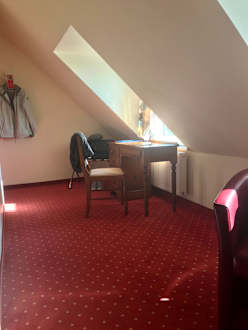 Einzelzimmer (mit Dachschrägen und rustikal eher altmodisch eingerichtet, aber sauber)