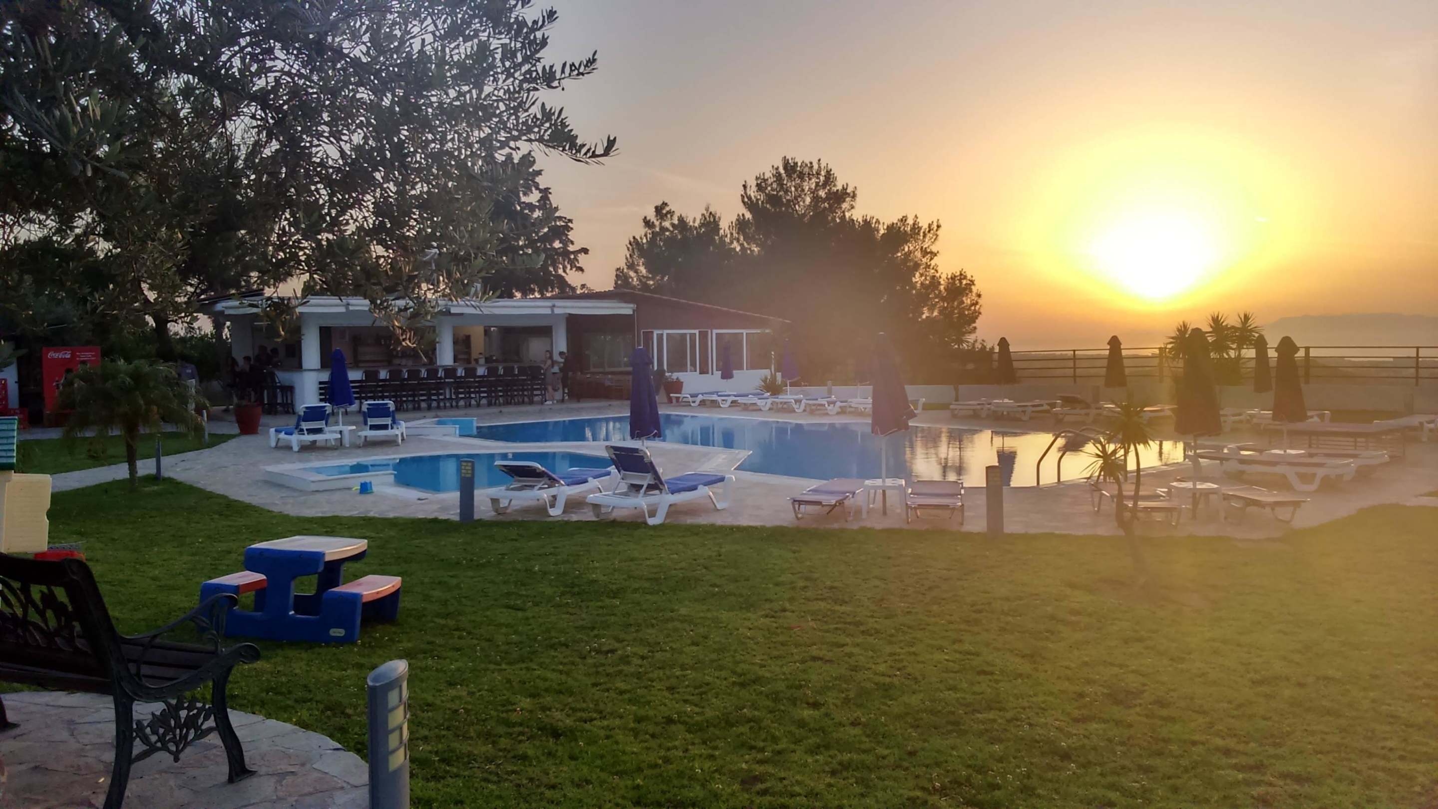 Pool + Taverne am Abend