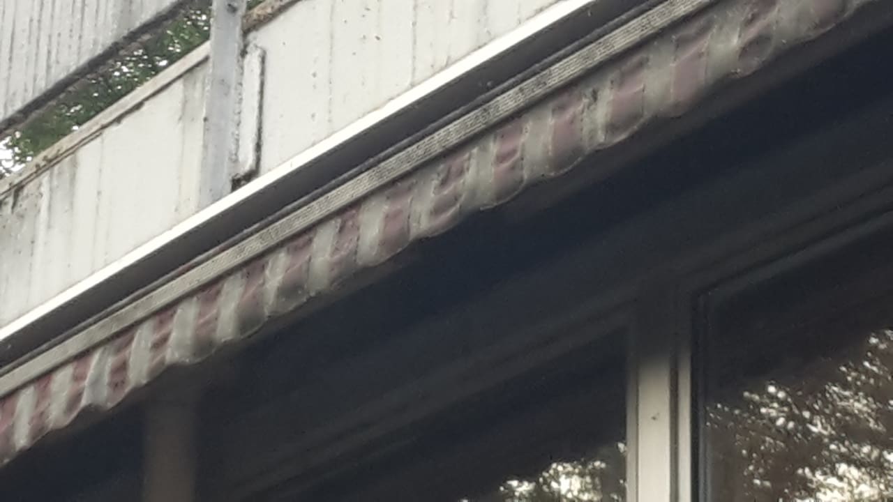 Markise mit Schimmel übersäht auf der Terasse